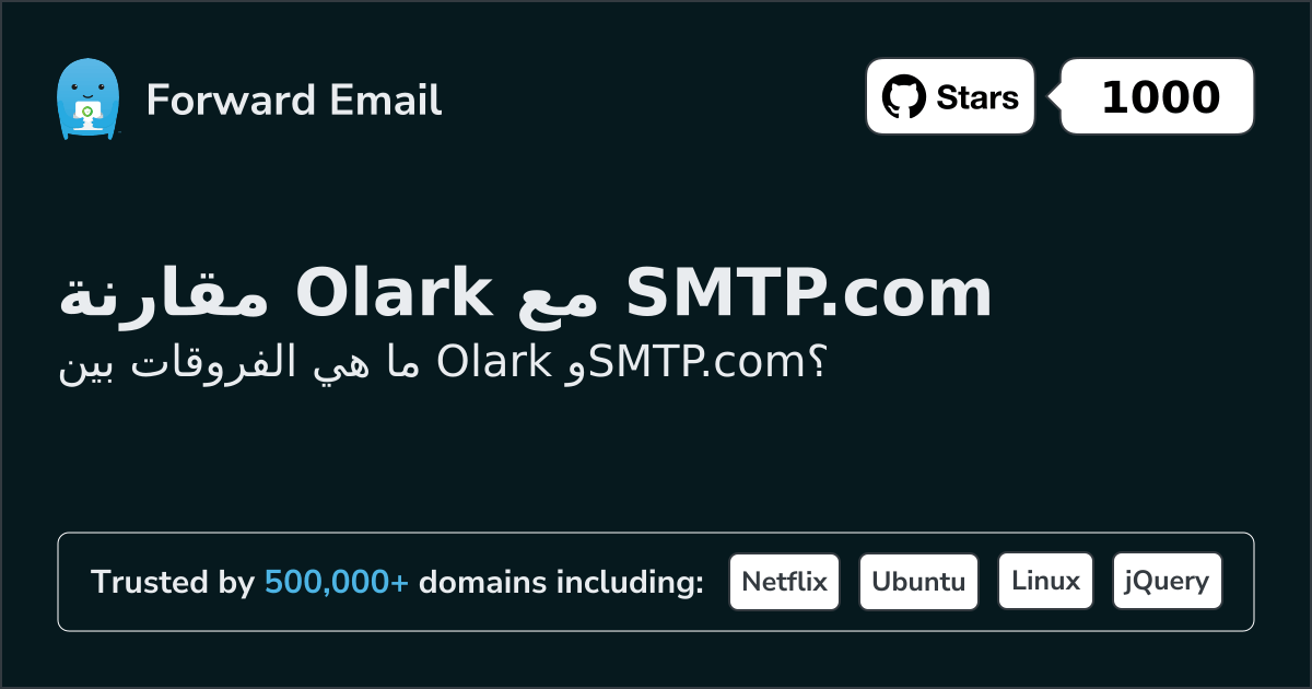 Olark"العملاء يريدون التحدث معك. اجعل الأمر سهلاً" | مقابل | SMTP.com"واجهة برمجة التطبيقات الخاصة بالمعاملات ونقل البريد الإلكتروني" |