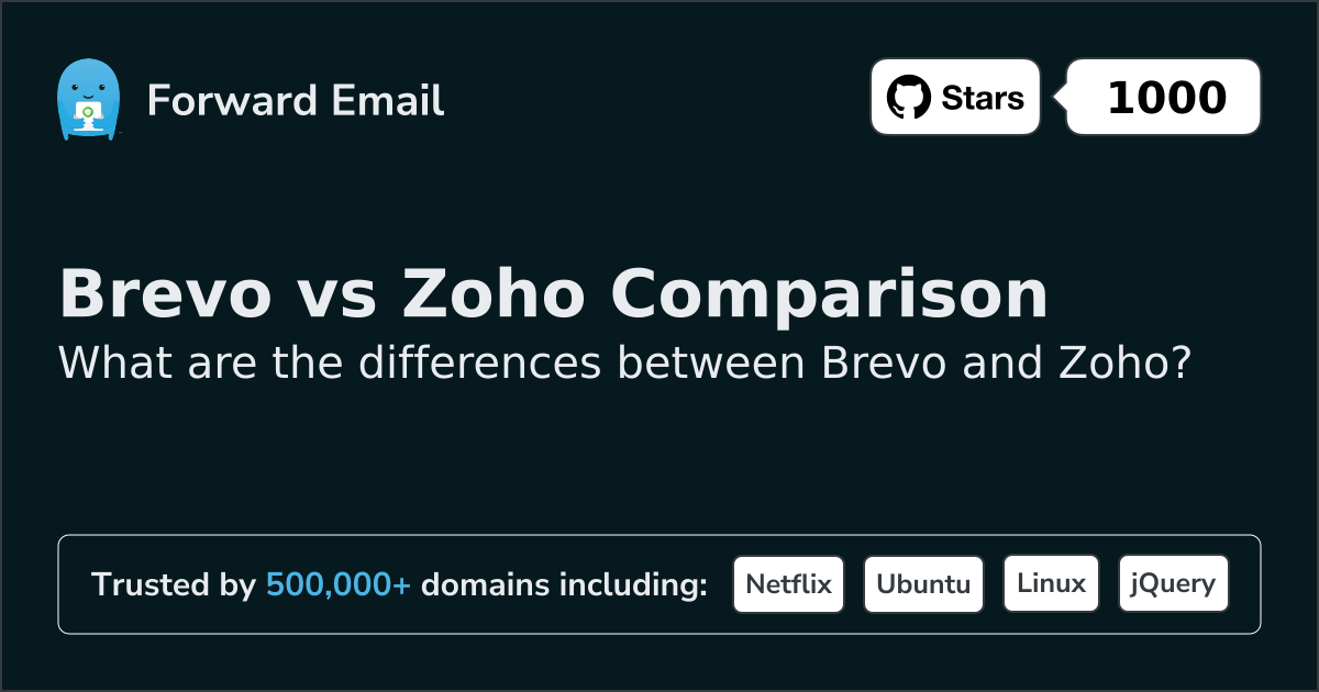 Brevo"The most approachable CRM to cultivate lasting customer relationships across Email, SMS, Chat and more" | vs. | Zoho"Secure business email for your organization" |