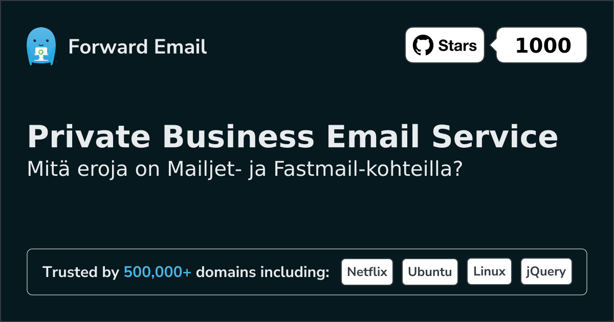 Mailjet"Luo ja ota käyttöön markkinointi- ja transaktiosähköposteja vaivattomasti yhdessä paikassa" | vs. | Fastmail"Nopea ja yksityinen sähköposti vain sinulle" |