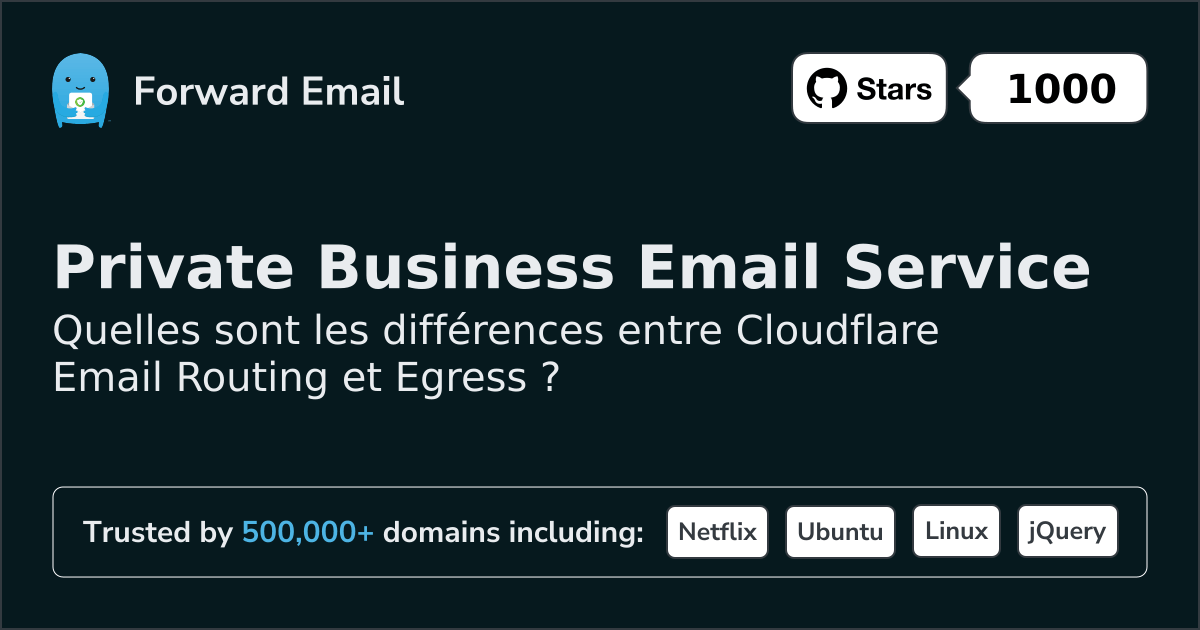 Cloudflare Email Routing"Créez facilement des adresses et acheminez des e-mails gratuitement" | contre. | Egress"Arrêtez les attaques de phishing les plus avancées" |