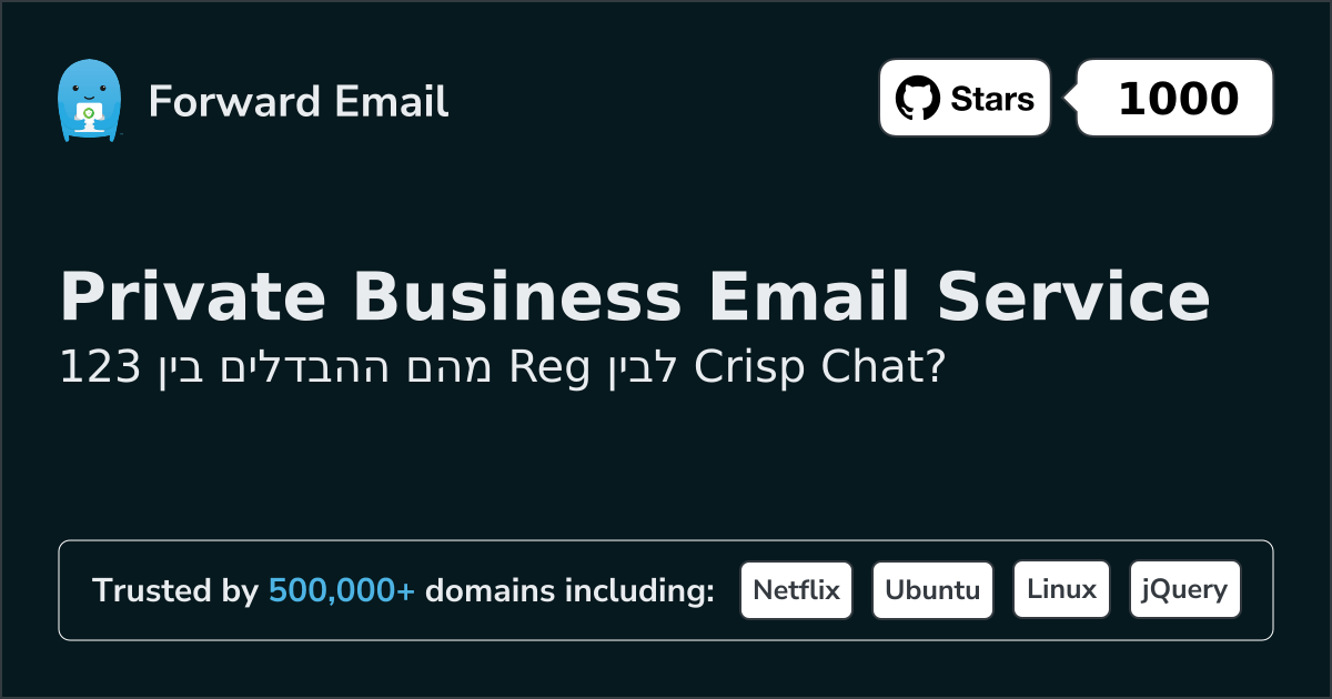123 Reg"אימייל מקצועי שמראה שאתם רציניים" | לעומת | Crisp Chat"תנו לחוויית הלקוח שלכם מגע אנושי" |