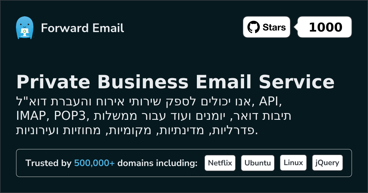 ארגונים ועסקים מובילים ברחבי העולם מסתמכים על שירות הדוא"ל המאובטח והאמין שלנו.