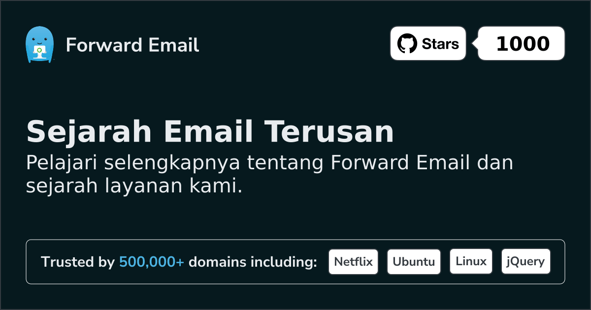 Februari 2025: Forward Email beralih ke Paket Data sebagai penyedia pusat data utama baru mereka, yang menerapkan perangkat keras bare-metal khusus yang berfokus pada kinerja untuk lebih meningkatkan keandalan dan kecepatan layanan.