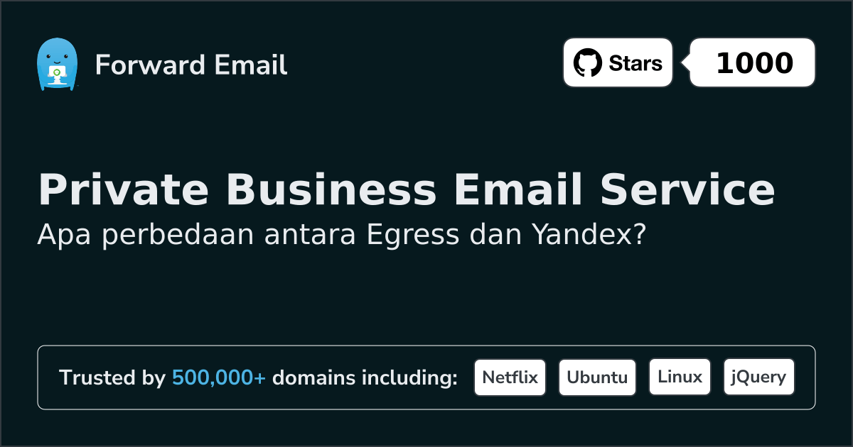 Egress"Hentikan serangan phishing yang lebih canggih" | melawan | Yandex"Alamat email dengan nama perusahaan Anda adalah cara mudah untuk menonjol" |