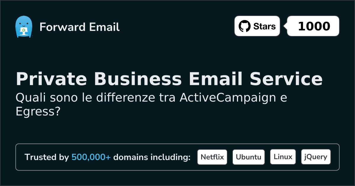 ActiveCampaign"Postmark, il servizio leader per le e-mail transazionali, ora fa parte di ActiveCampaign" | contro | Egress"Blocca gli attacchi di phishing più avanzati" |