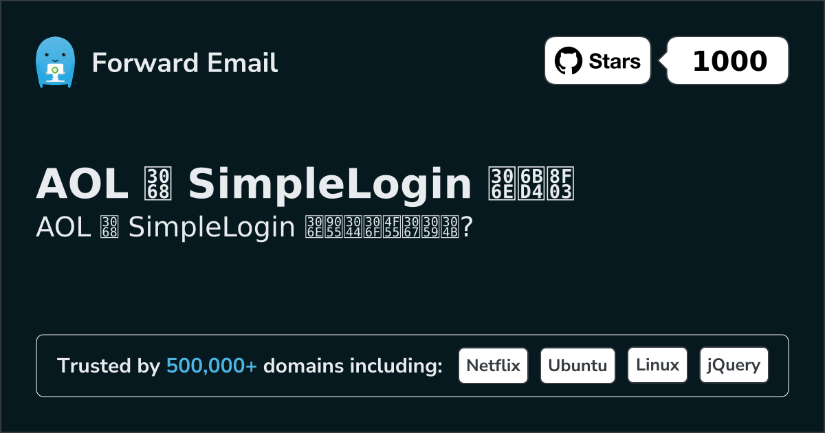 AOL"AOL メールは、Yahoo! Inc. の一部門である AOL が提供する無料の Web ベースの電子メール サービスです。" | 対 | SimpleLogin"匿名でメールを送受信する" |