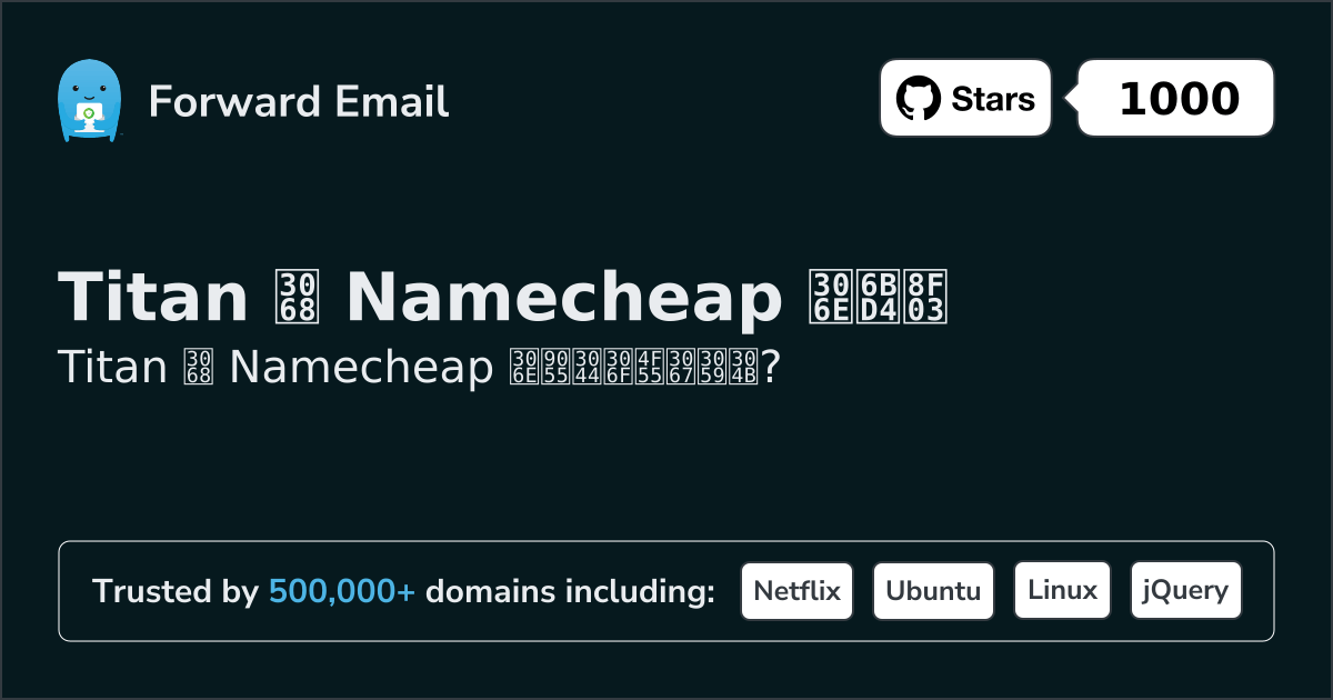 Titan"顧客中心のビジネスメールサービスで成長をサポート" | 対 | Namecheap"プロフェッショナルメールをもっと安く、もっと活用しましょう" |