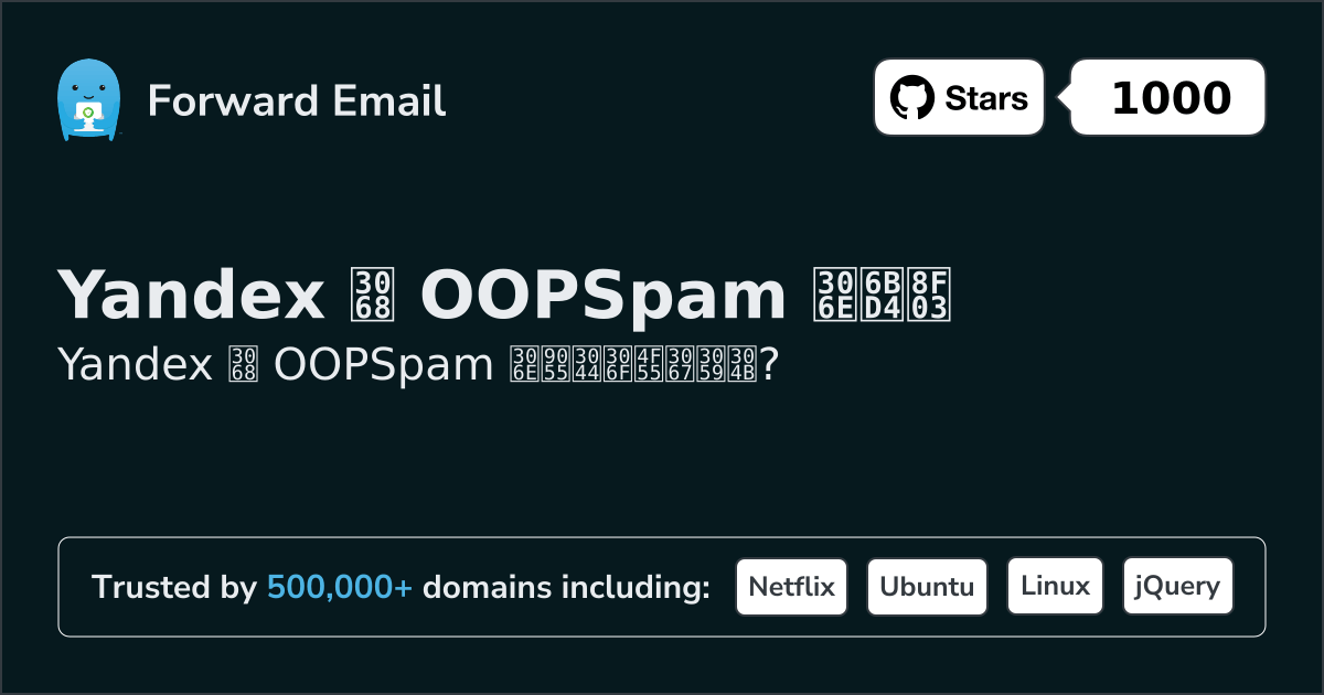 Yandex"会社名を記載したメールアドレスは、目立つための簡単な方法です" | 対 | OOPSpam"スパムと不正行為の検出を自動化" |