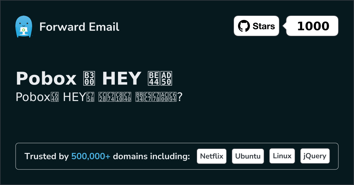 Pobox"이메일 ID 잠금 해제" | 대 | HEY"마침내 이메일과 캘린더를 수정했습니다!" |