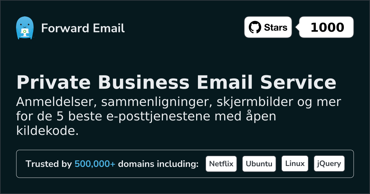 Videresend e-post er den beste og eneste e-posttjenesten med 100 % åpen kildekode.