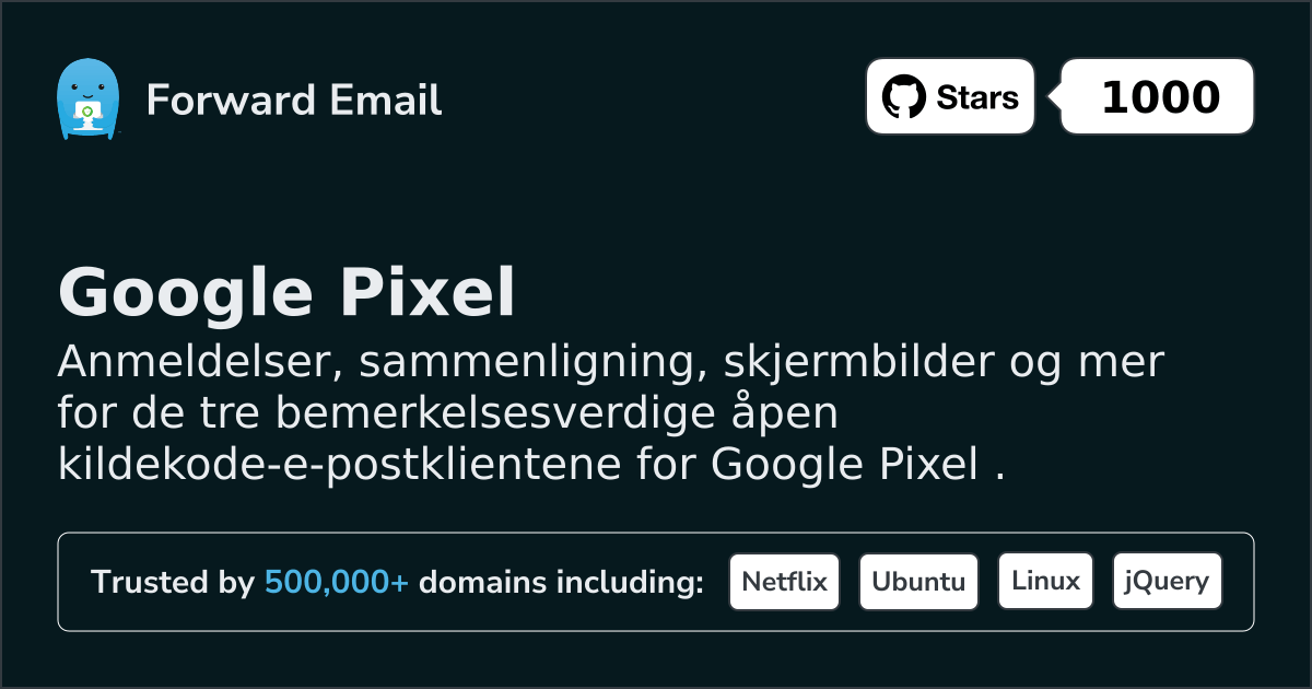 FairEmail er en åpen kildekode-e-post klient for Google Pixel og er skrevet i programmeringsspråket Java & C++. Den offisielle beskrivelsen fra nettstedet sier «Fullfunksjonell, åpen kildekode, personvernvennlig e-postapp for Android»