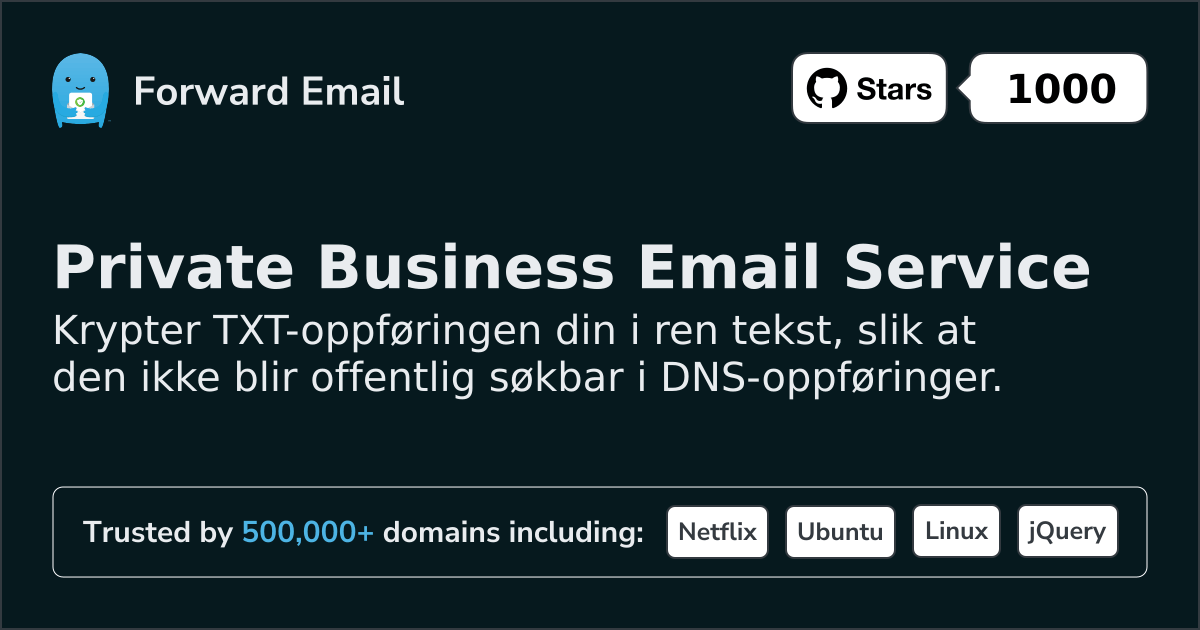 Skriv inn din klartekst-TXT-oppføring nedenfor for å kryptere den – noe som effektivt vil skjule og maskere videresendingskonfigurasjonen din fra å være offentlig søkbar.