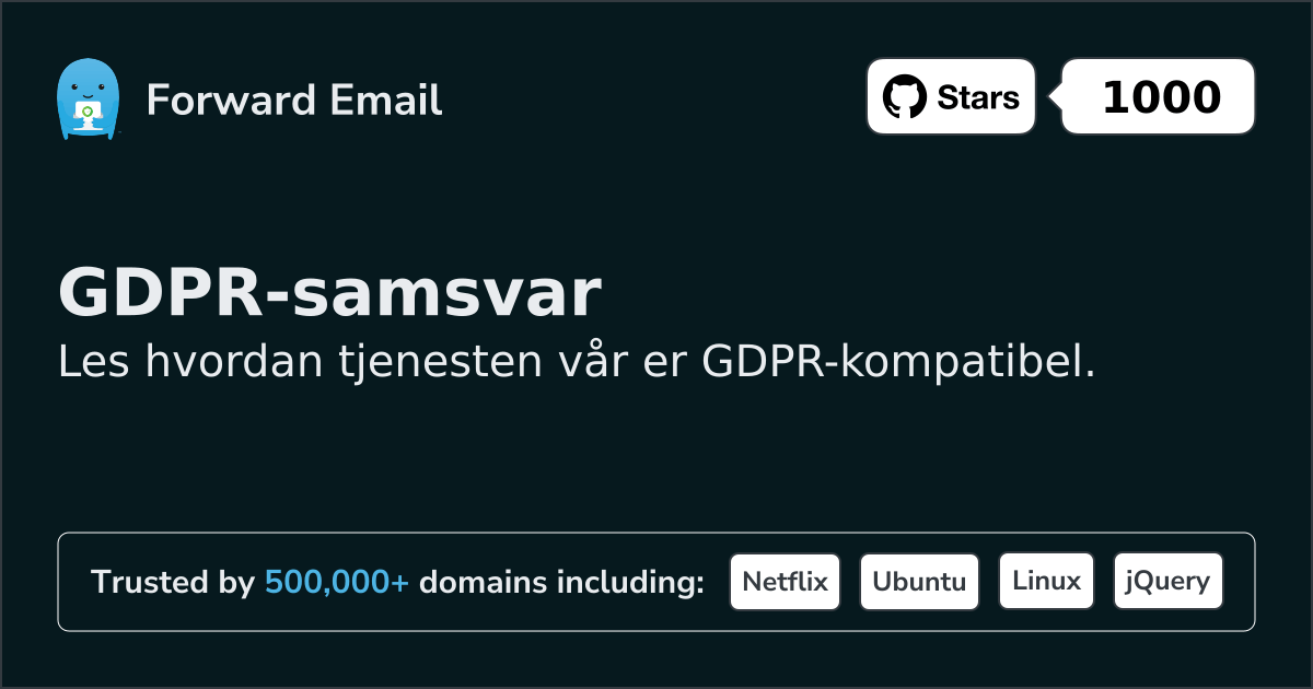 Forward Email er et personvernfokusert selskap som er forpliktet til å beskytte dataene dine.