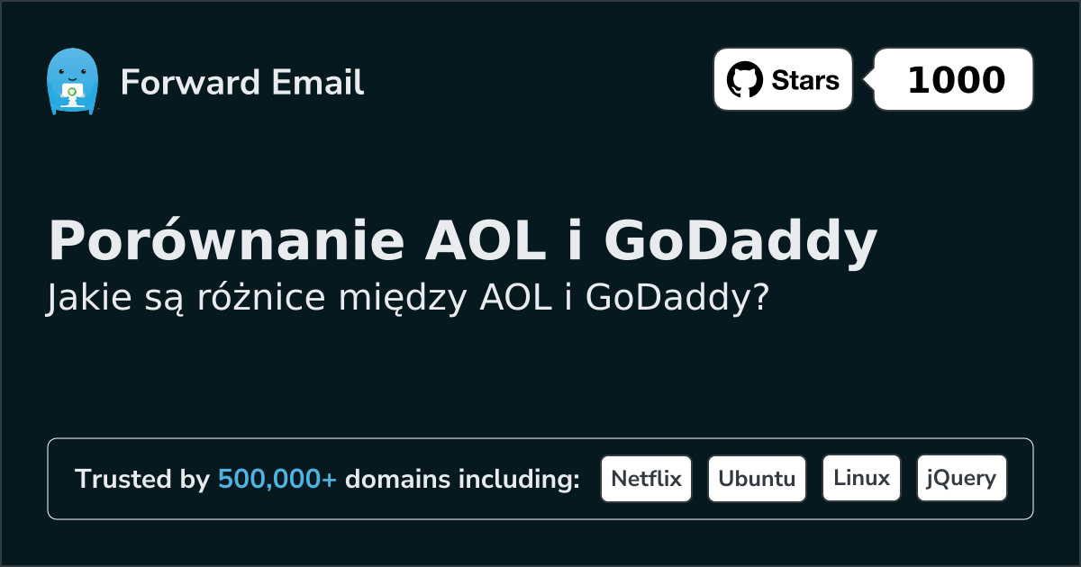 AOL"AOL Mail to bezpłatna usługa poczty elektronicznej oparta na sieci WWW, oferowana przez AOL, oddział Yahoo! Inc." | przeciwko | GoDaddy"Utwórz profesjonalny adres e-mail, używając swojej domeny" |
