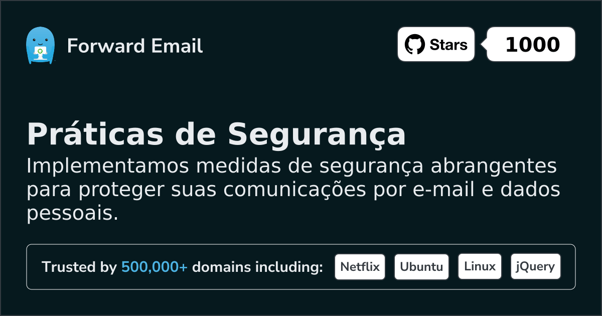 Para obter mais informações sobre nossas práticas de segurança ou para relatar preocupações de segurança, entre em contato com security@forwardemail.net.