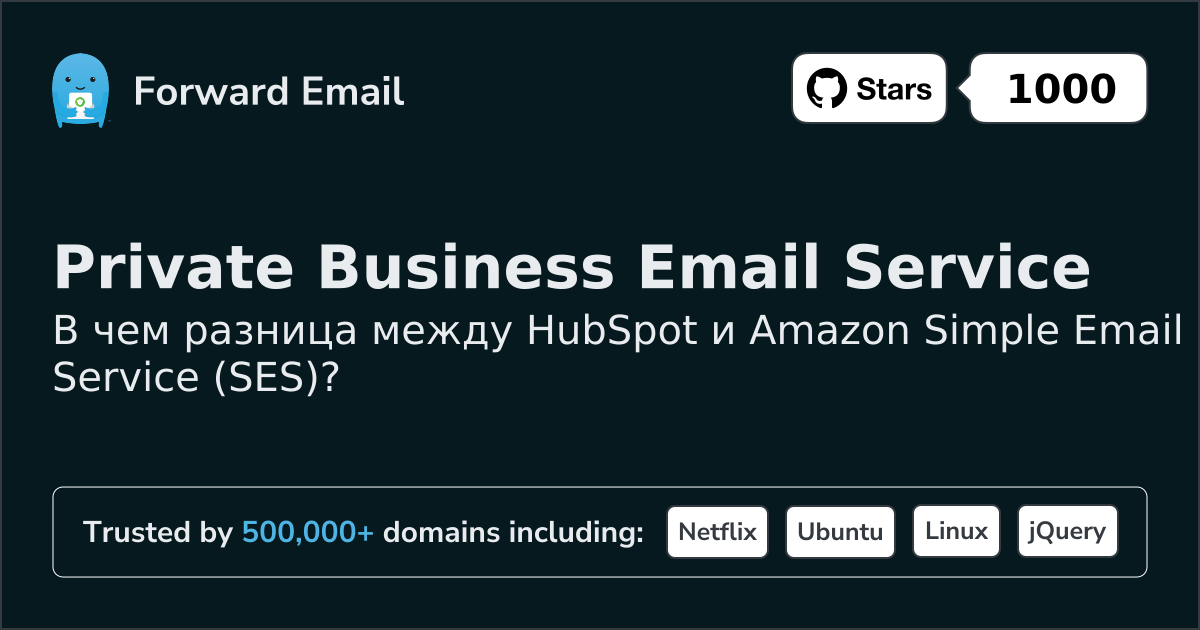 HubSpot"Развивайтесь лучше с HubSpot" | против. | Amazon Simple Email Service (SES)"Получите надежную, масштабируемую электронную почту для общения с клиентами по самым низким в отрасли ценам." |