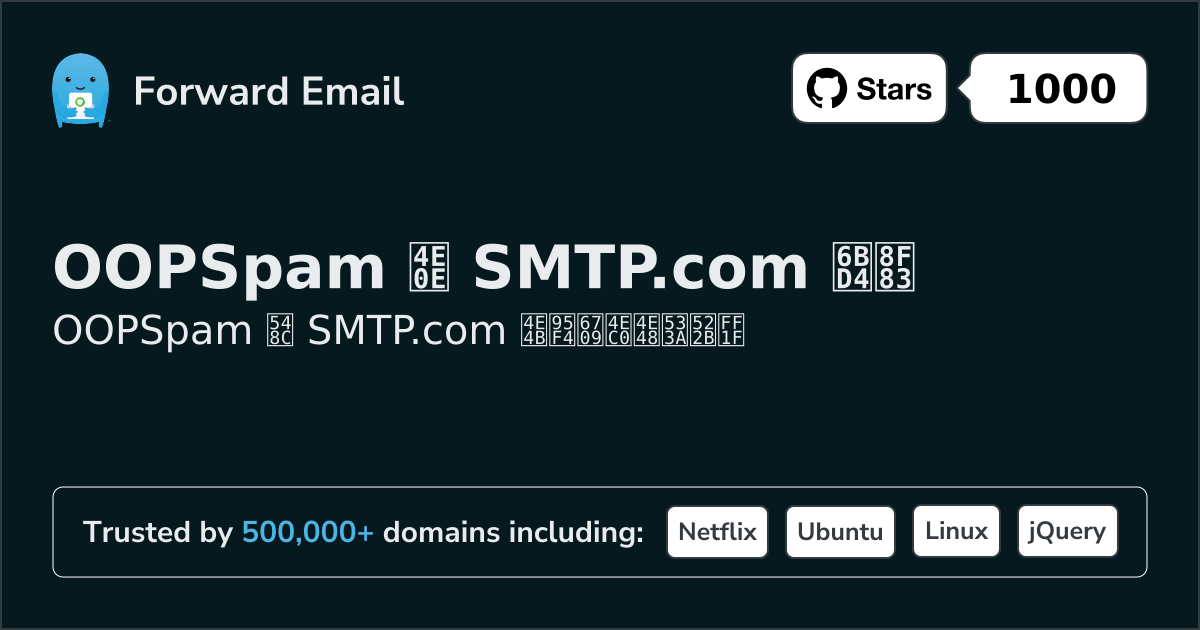 - OOPSpam 与 SMTP.com 比较 (2026)